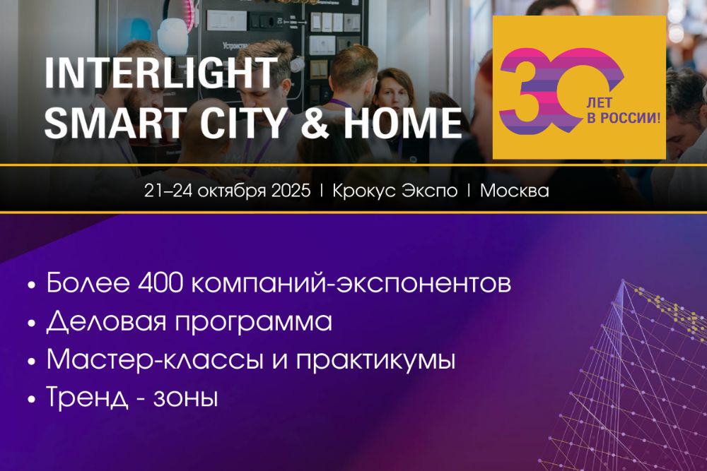 Interlight | Smart City & Home – это передовые технологии, перспективы индустрии и передовые решения для ваших проектов. Присоединяйтесь к крупнейшей выставке и откройте новые горизонты вашего бизнеса.