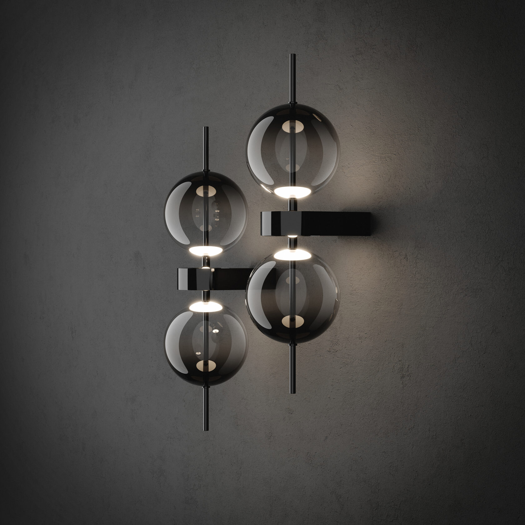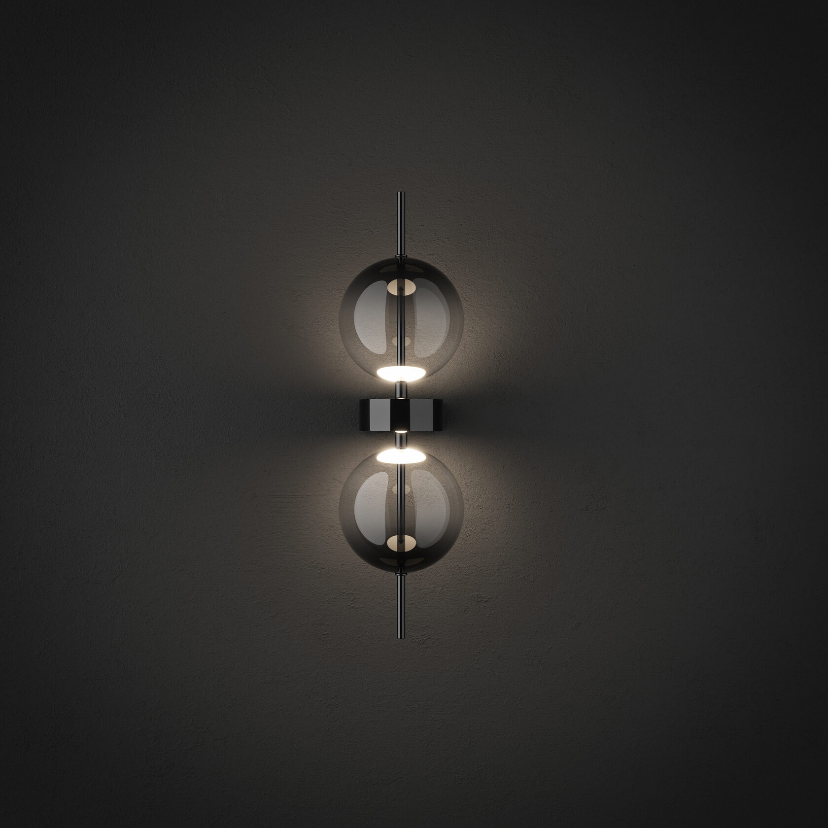 Для создания светильника с таинственным и чарующим эффектом были использованы различные технологии. Например, источники света были спрятаны в основании с обеих сторон матовыми рассеивателями для создания мягкого освещения. Стеклянные шары выкрашены зеркальным градиентом, которое отражает свет и создает невероятные блики. А чтобы дизайн светильника обладал визуальной чистотой, все крепления были скрыты с помощью уникальных магнитных креплений.