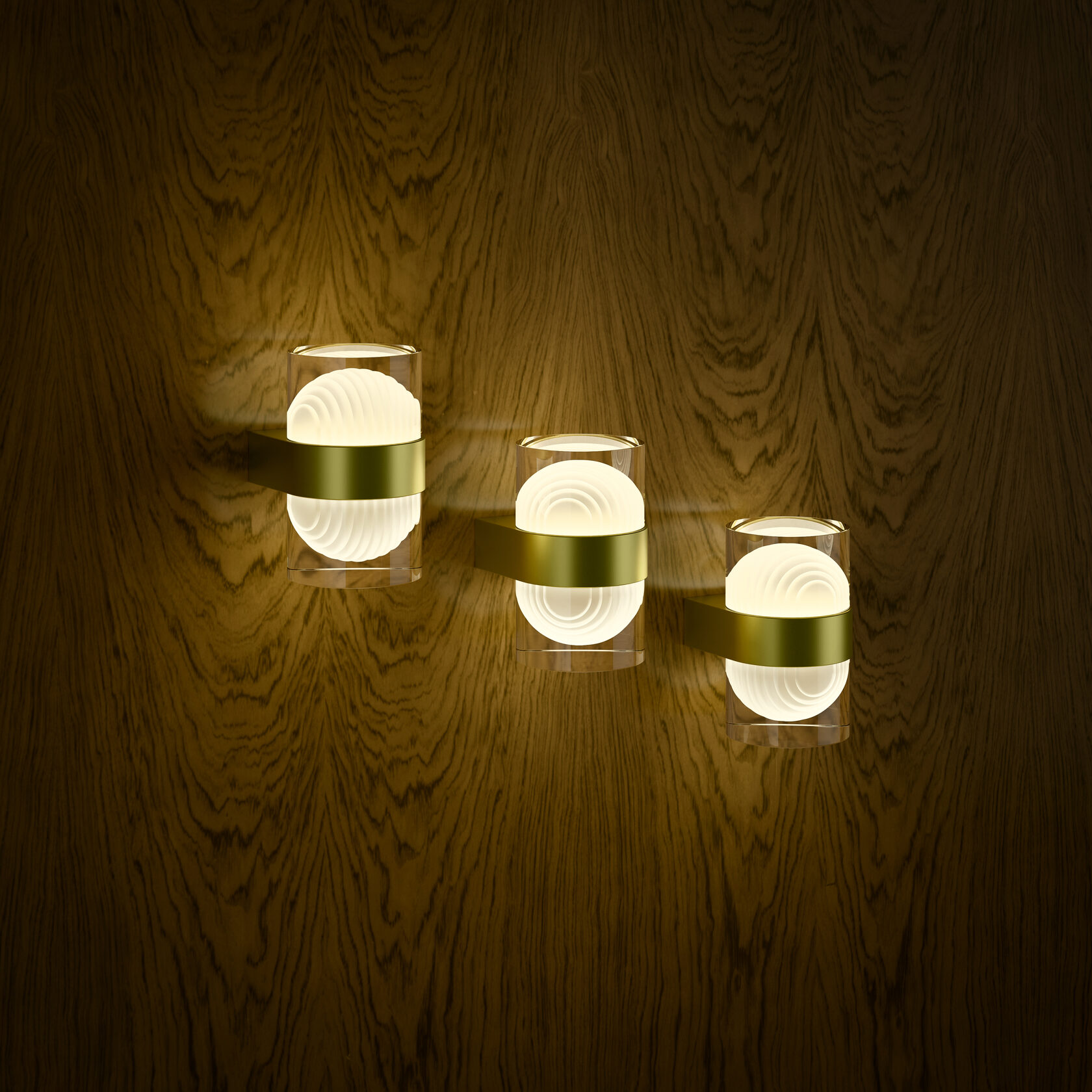 соответствует идеи светильника, который освещает элементы, которые обычно принято скрывать. Коллекция очень удобна для пользователя человеком: источники света закрыты матовыми рассеивателями для создания мягкого освещения, значительная сила светового и возможность менять высоту светильников при установке. Стеклянная сфера окрашены белым градиентом, чтобы скрыть крепления стекла.