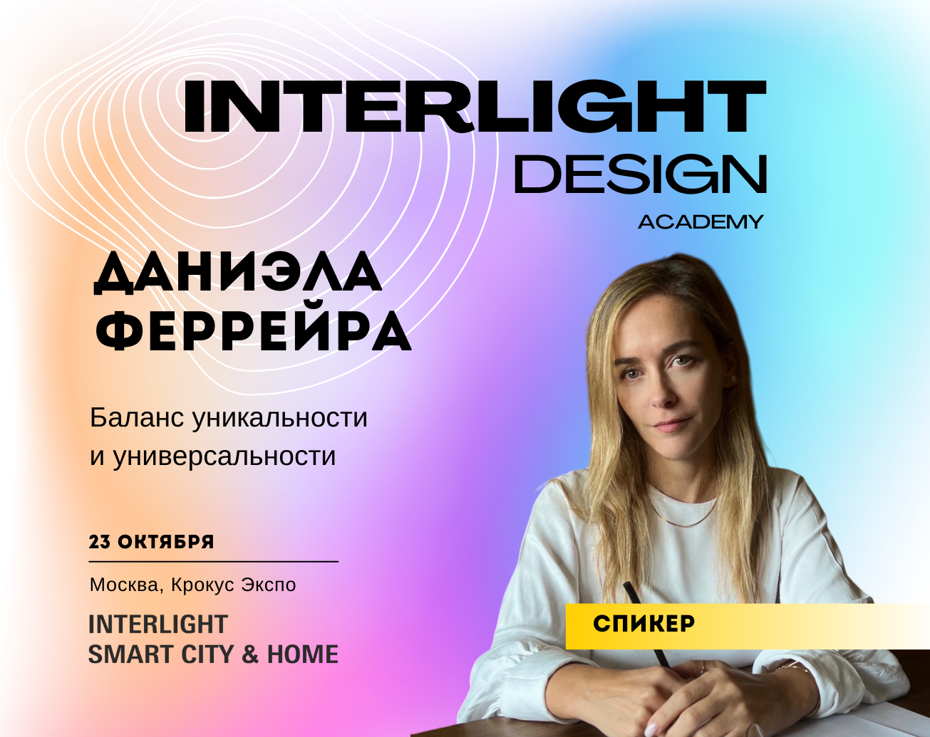 Приглашаем вас на ключевую площадку для архитекторов и дизайнеров — Interlight Design Academy. 23 октября с лекцией выступит Даниэла Феррейра, ведущий дизайнер легендарной португальской компании Serip.